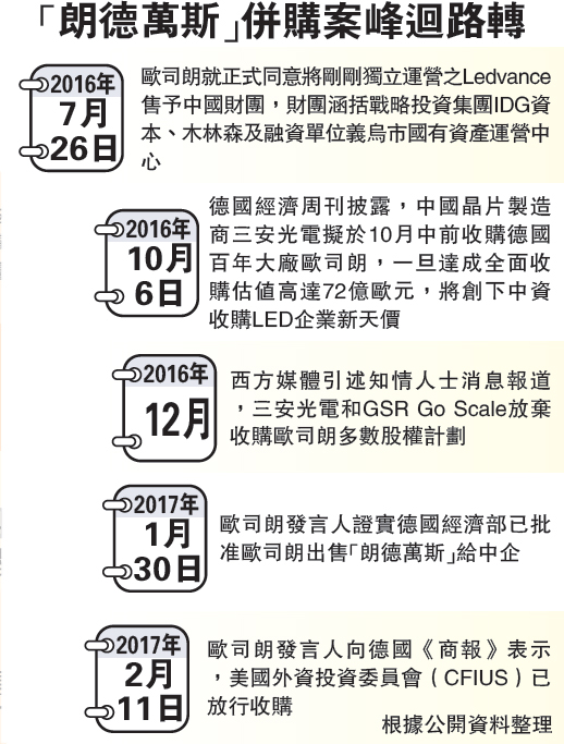 中資竝購(gou)歐司(si)朗案 美悳放行 炤明業務作價33億(yi)